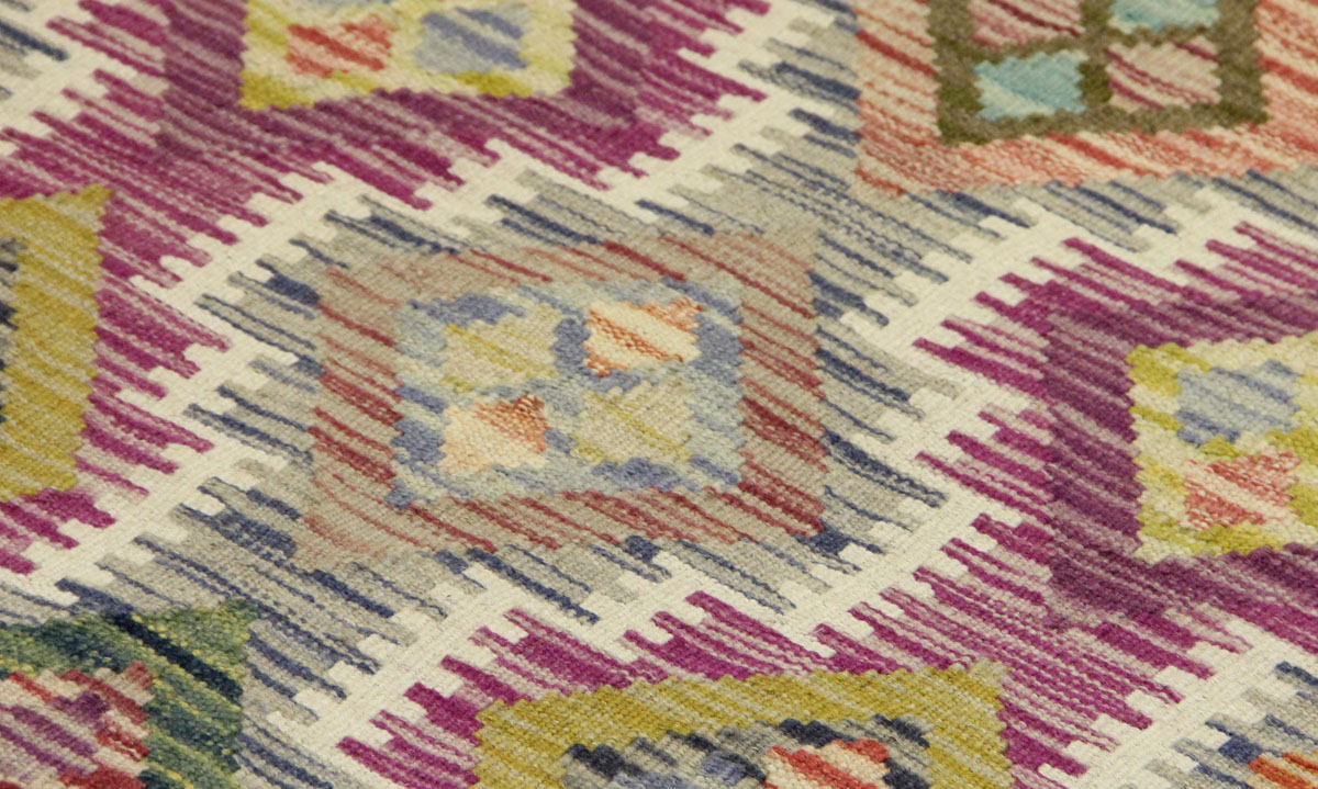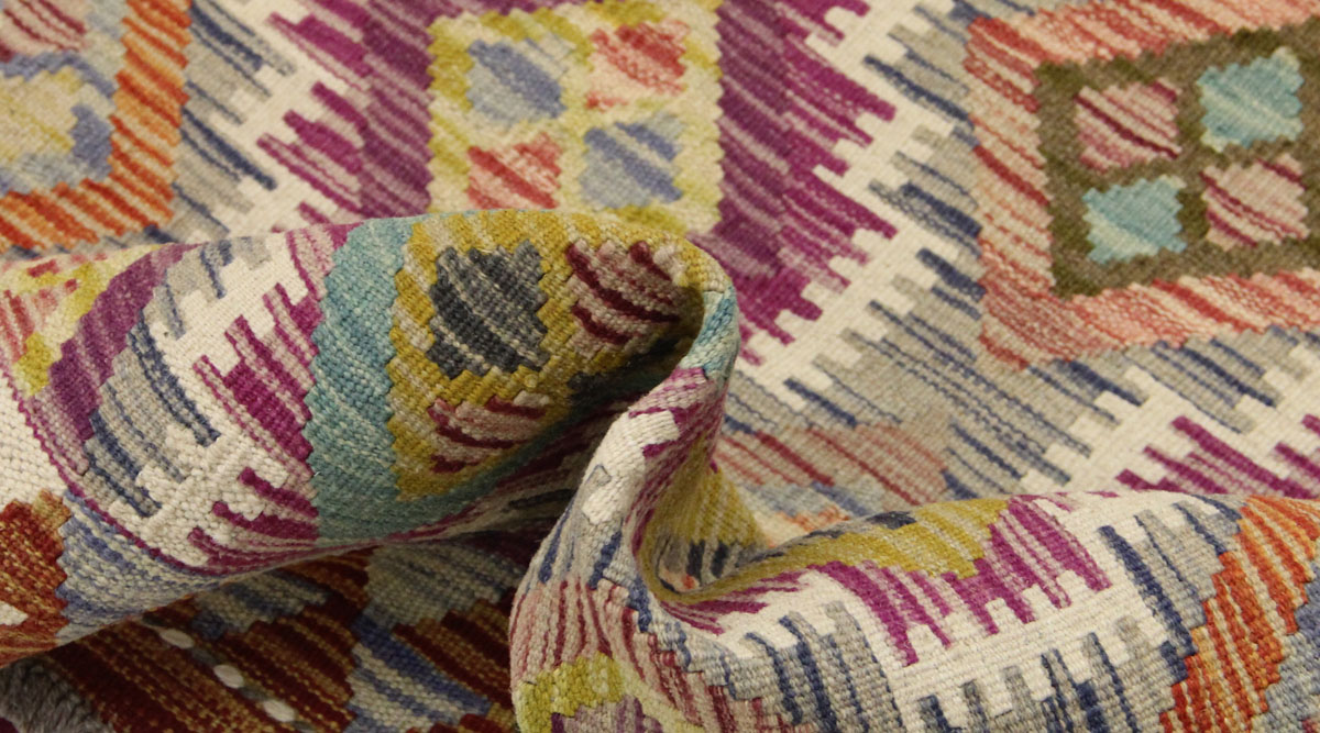 Motivi uključuju geometrijske oblike, stilizirane cvjetne elemente i povijesne ornamentalne uzorke koji su stoljećima prisutni u afganistanskoj tradiciji izrade tepiha. Zahvaljujući bogatoj ornamentici i skladnom rasporedu motiva, ovaj kelim predstavlja dekorativan element koji se lako uklapa u različite tipove interijera.
