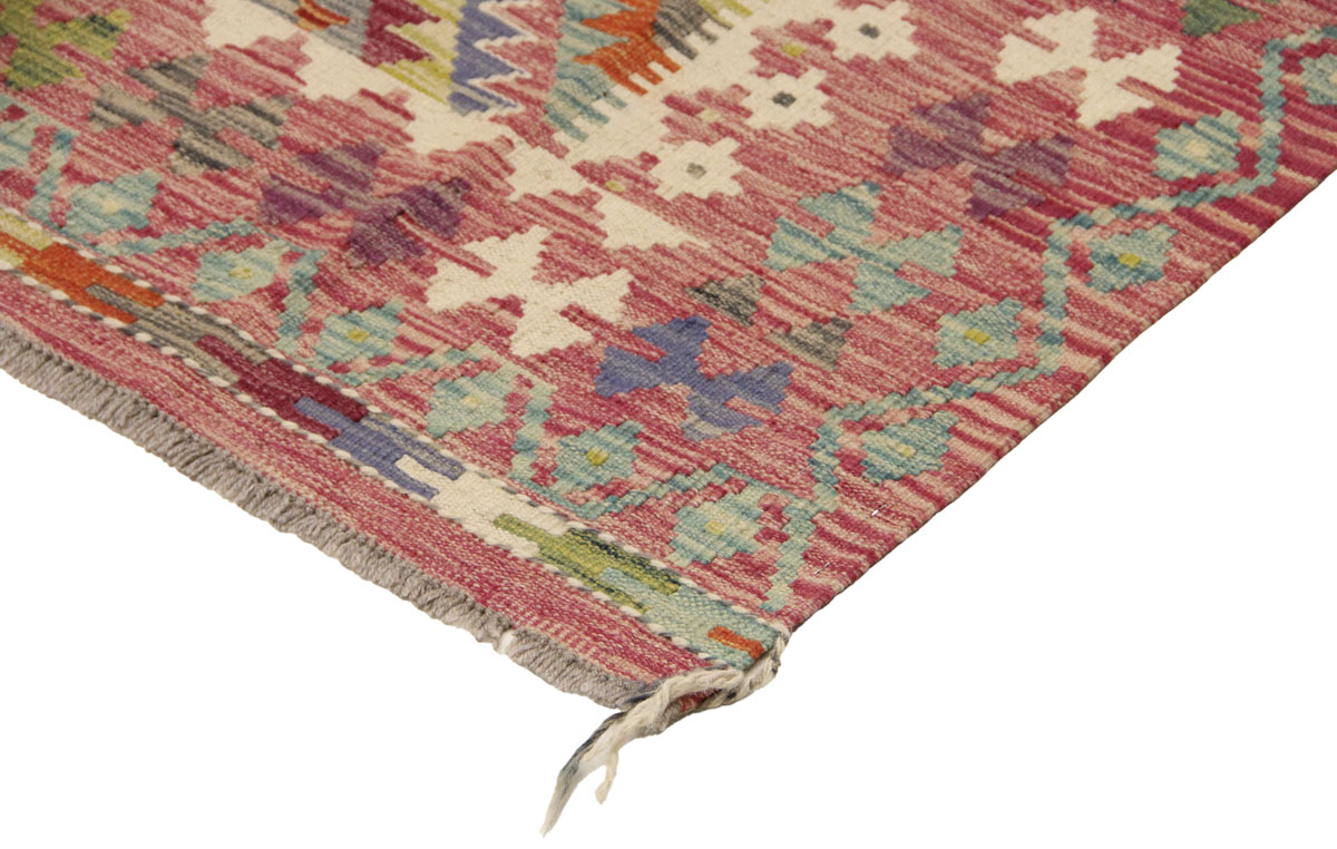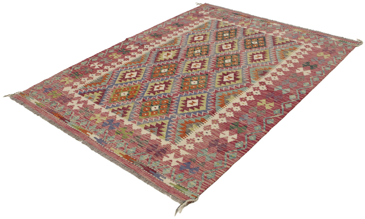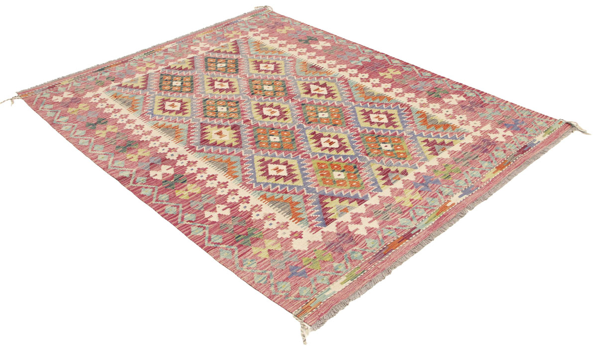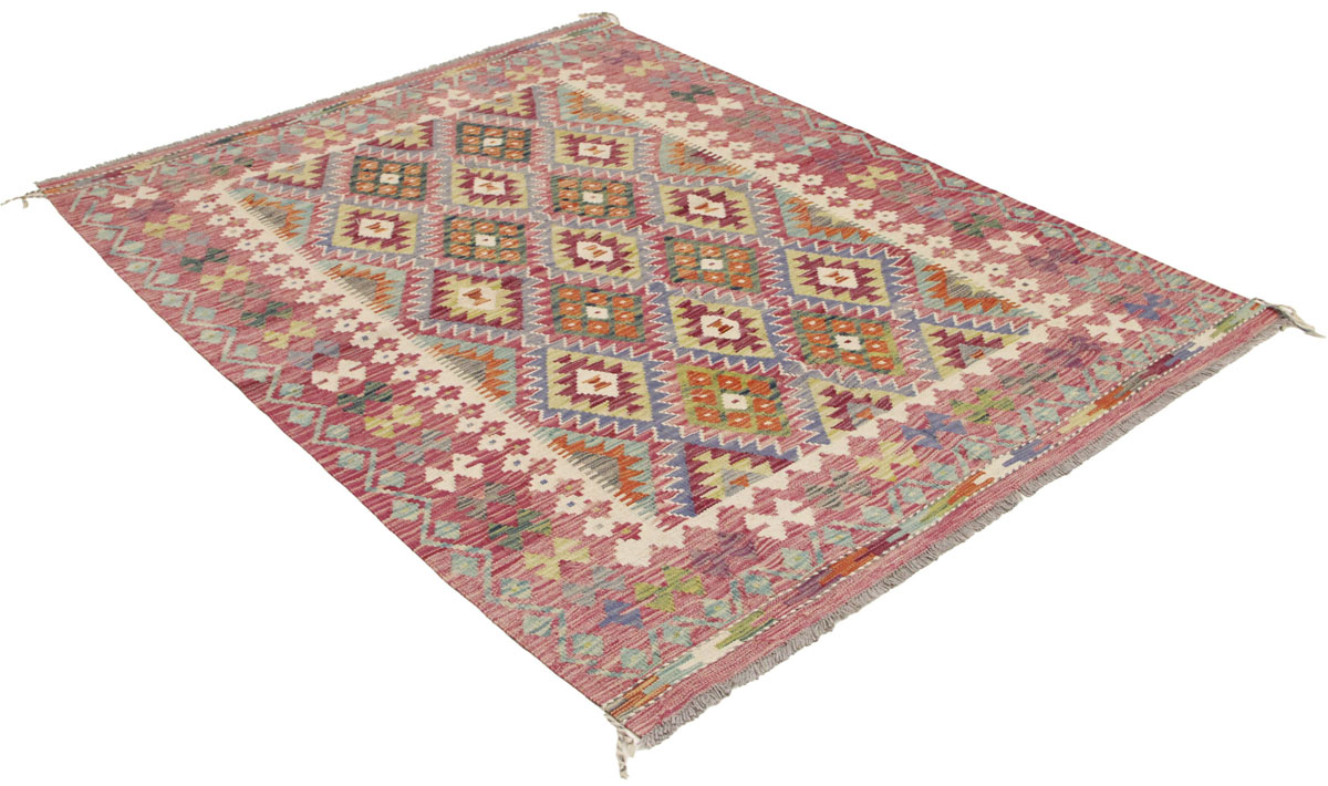 Motivi uključuju geometrijske oblike, stilizirane cvjetne elemente i povijesne ornamentalne uzorke koji su stoljećima prisutni u afganistanskoj tradiciji izrade tepiha. Zahvaljujući bogatoj ornamentici i skladnom rasporedu motiva, ovaj kelim predstavlja dekorativan element koji se lako uklapa u različite tipove interijera.