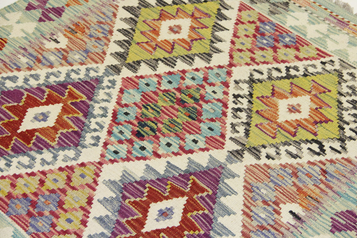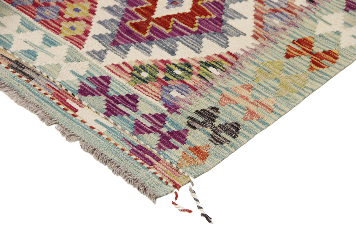 Motivi uključuju geometrijske oblike, stilizirane cvjetne elemente i povijesne ornamentalne uzorke koji su stoljećima prisutni u afganistanskoj tradiciji izrade tepiha. Zahvaljujući bogatoj ornamentici i skladnom rasporedu motiva, ovaj kelim predstavlja dekorativan element koji se lako uklapa u različite tipove interijera.
