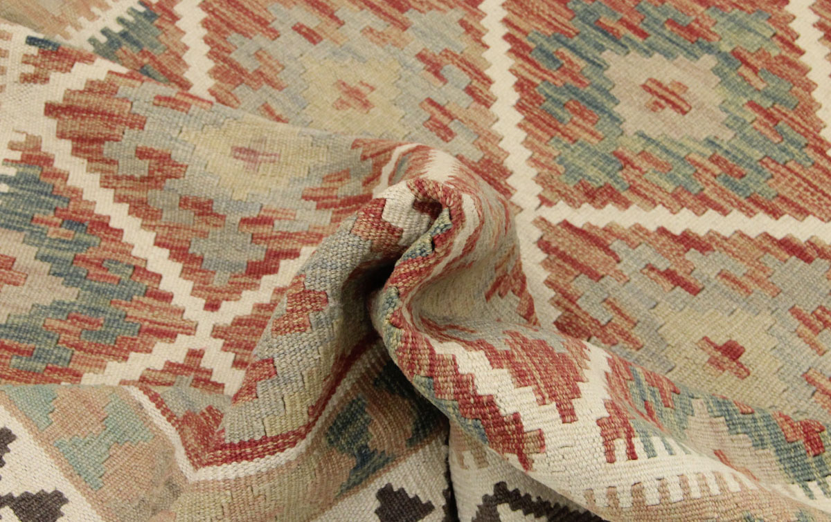 Motivi uključuju geometrijske oblike, stilizirane cvjetne elemente i povijesne ornamentalne uzorke koji su stoljećima prisutni u afganistanskoj tradiciji izrade tepiha. Zahvaljujući bogatoj ornamentici i skladnom rasporedu motiva, ovaj kelim predstavlja dekorativan element koji se lako uklapa u različite tipove interijera.