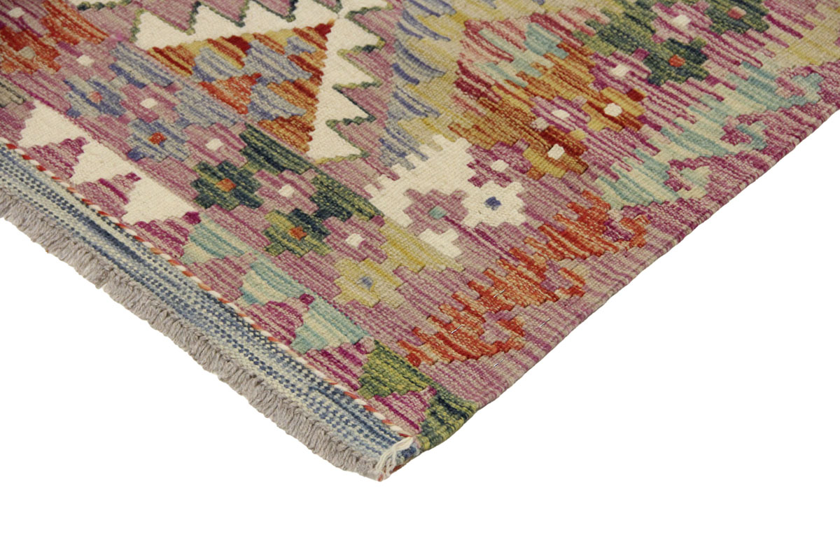 Motivi uključuju geometrijske oblike, stilizirane cvjetne elemente i povijesne ornamentalne uzorke koji su stoljećima prisutni u afganistanskoj tradiciji izrade tepiha. Zahvaljujući bogatoj ornamentici i skladnom rasporedu motiva, ovaj kelim predstavlja dekorativan element koji se lako uklapa u različite tipove interijera.