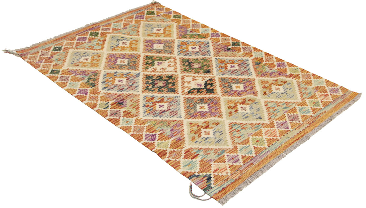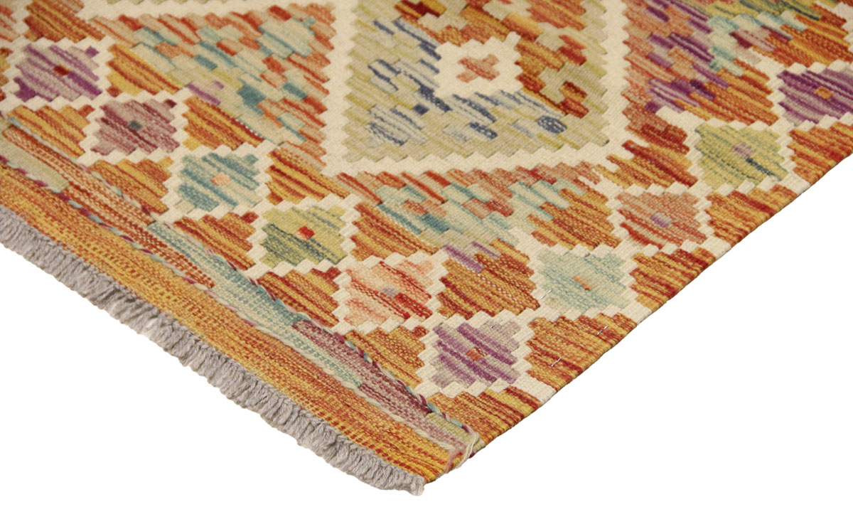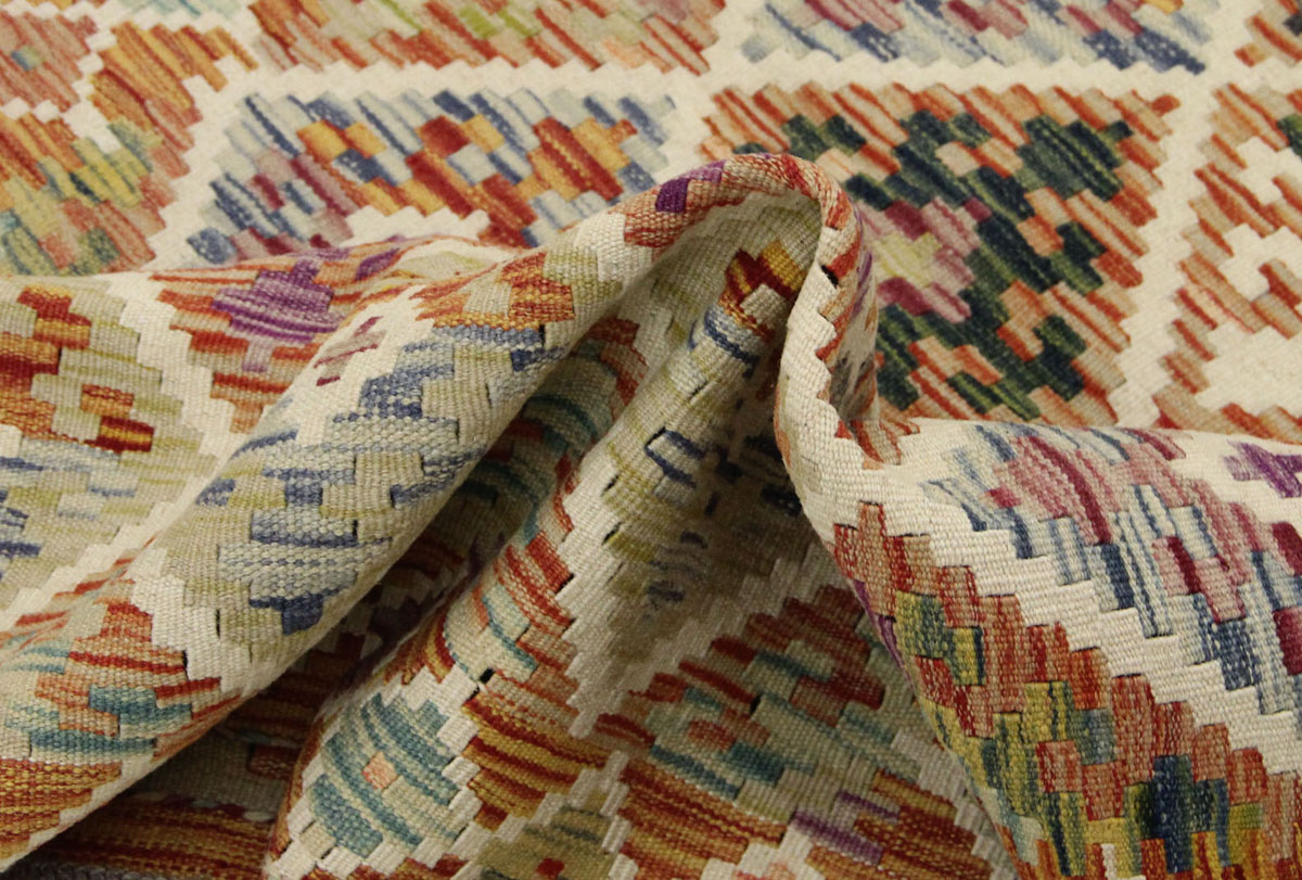 Motivi uključuju geometrijske oblike, stilizirane cvjetne elemente i povijesne ornamentalne uzorke koji su stoljećima prisutni u afganistanskoj tradiciji izrade tepiha. Zahvaljujući bogatoj ornamentici i skladnom rasporedu motiva, ovaj kelim predstavlja dekorativan element koji se lako uklapa u različite tipove interijera.