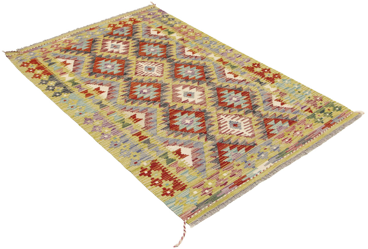 Kelim je izrađen tradicionalnom tehnikom tkanja na tkalačkom stanu koristeći prirodne materijale poput vune i pamuka. Nakon tkanja vlakna se boje kako bi se postigla skladna paleta tonova koja naglašava strukturu i ritam uzorka. Takvi kelimi poznati su po svojoj izdržljivosti, ravnoj strukturi i izraženom dekorativnom karakteru.