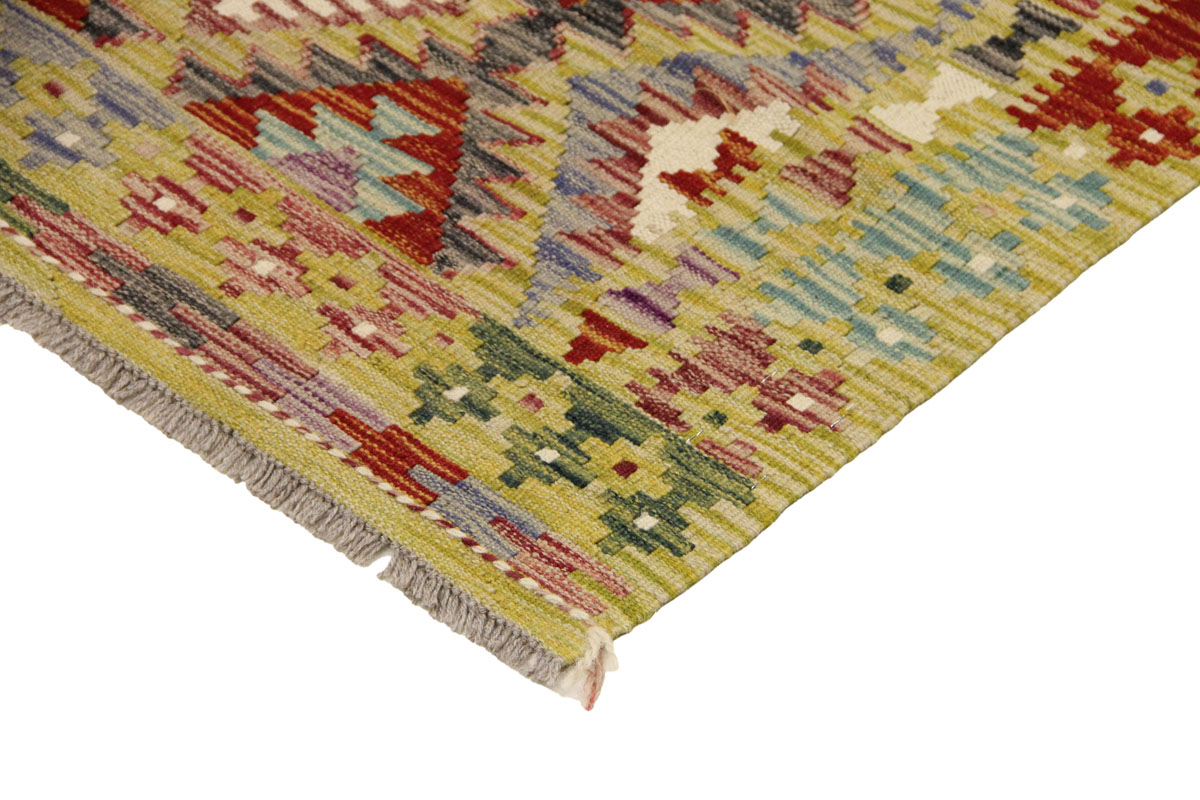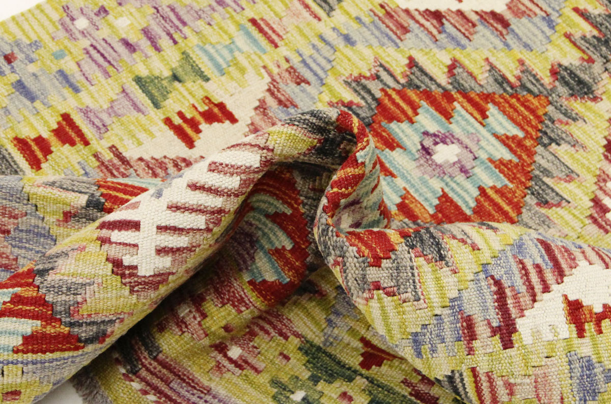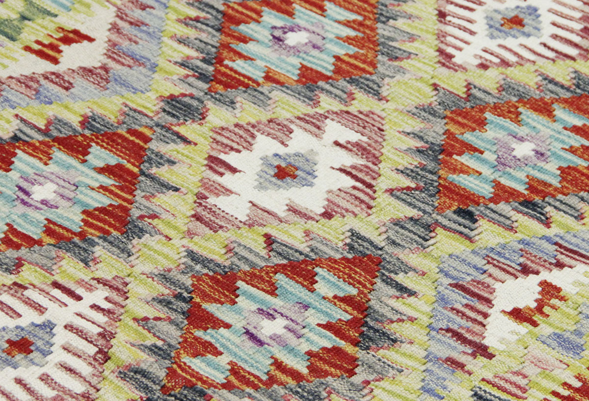 Motivi uključuju geometrijske oblike, stilizirane cvjetne elemente i povijesne ornamentalne uzorke koji su stoljećima prisutni u afganistanskoj tradiciji izrade tepiha. Zahvaljujući bogatoj ornamentici i skladnom rasporedu motiva, ovaj kelim predstavlja dekorativan element koji se lako uklapa u različite tipove interijera.