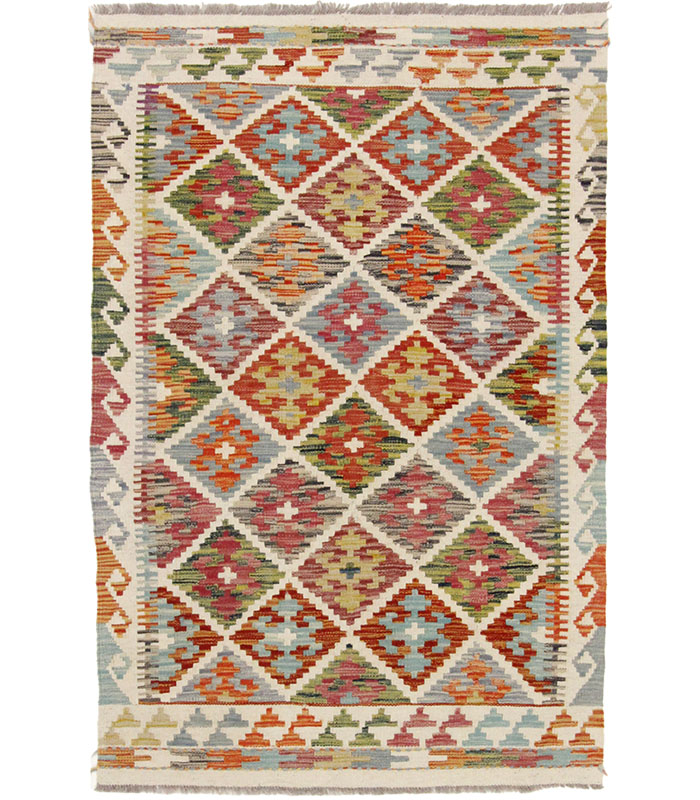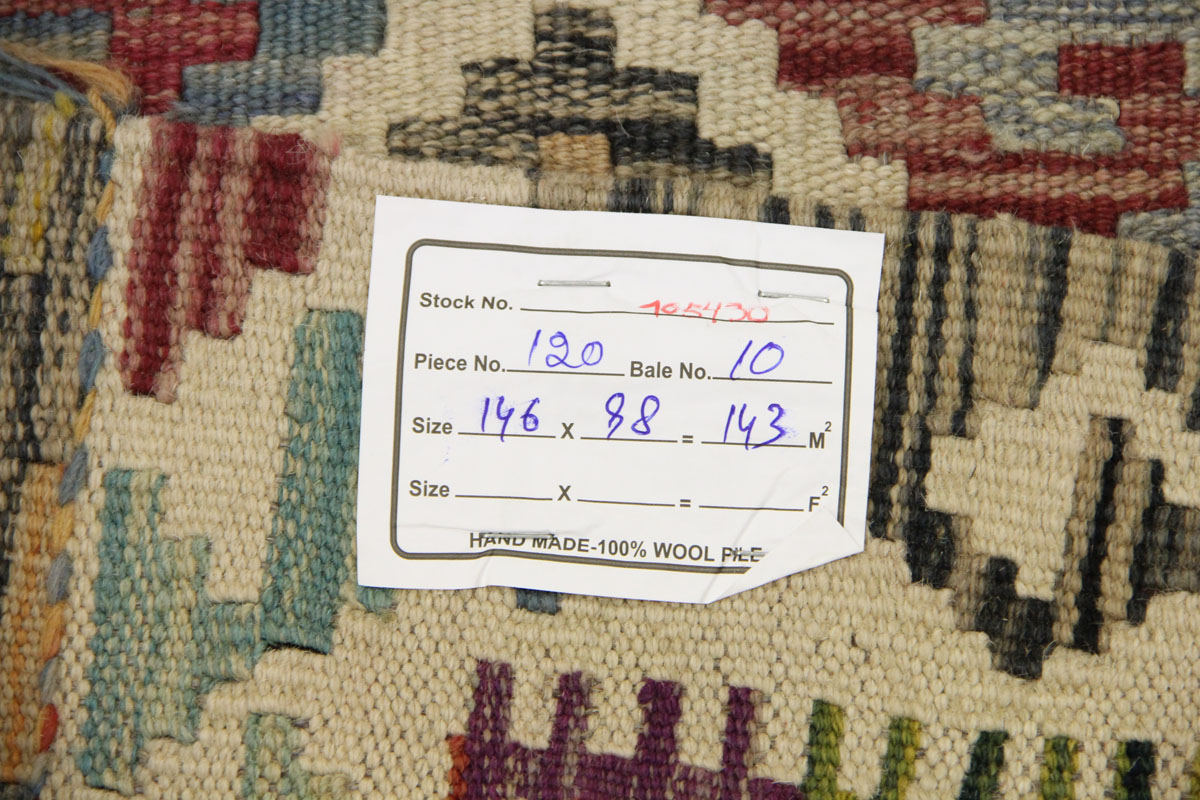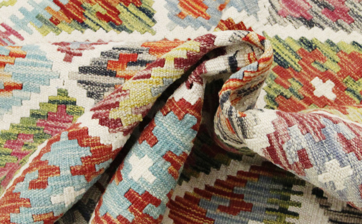 Motivi uključuju geometrijske oblike, stilizirane cvjetne elemente i povijesne ornamentalne uzorke koji su stoljećima prisutni u afganistanskoj tradiciji izrade tepiha. Zahvaljujući bogatoj ornamentici i skladnom rasporedu motiva, ovaj kelim predstavlja dekorativan element koji se lako uklapa u različite tipove interijera.