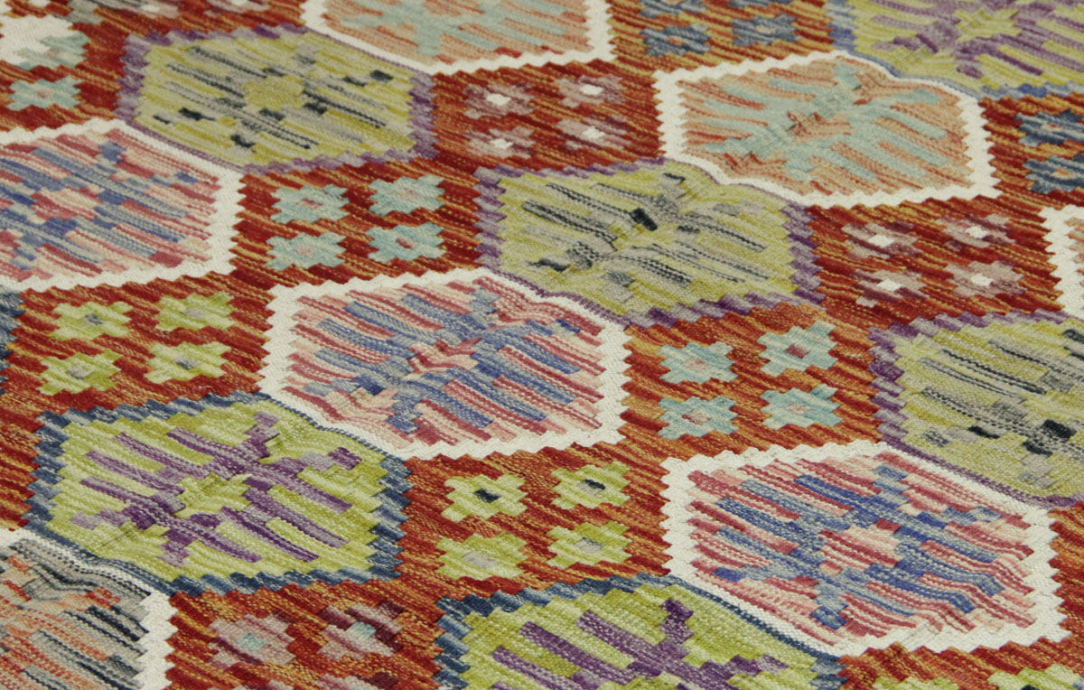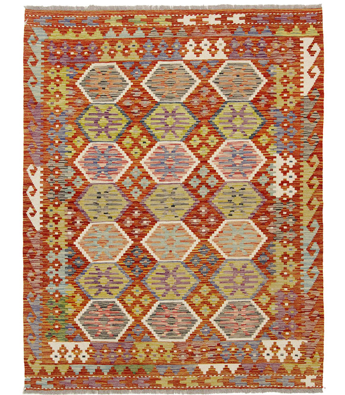 Motivi uključuju geometrijske oblike, stilizirane cvjetne elemente i povijesne ornamentalne uzorke koji su stoljećima prisutni u afganistanskom dizajnu te se smatraju važnim dijelom kulturne baštine zemlje. Zahvaljujući uravnoteženom rasporedu motiva, kelim djeluje dekorativno i lako se uklapa u klasične, etno ili suvremene interijere.