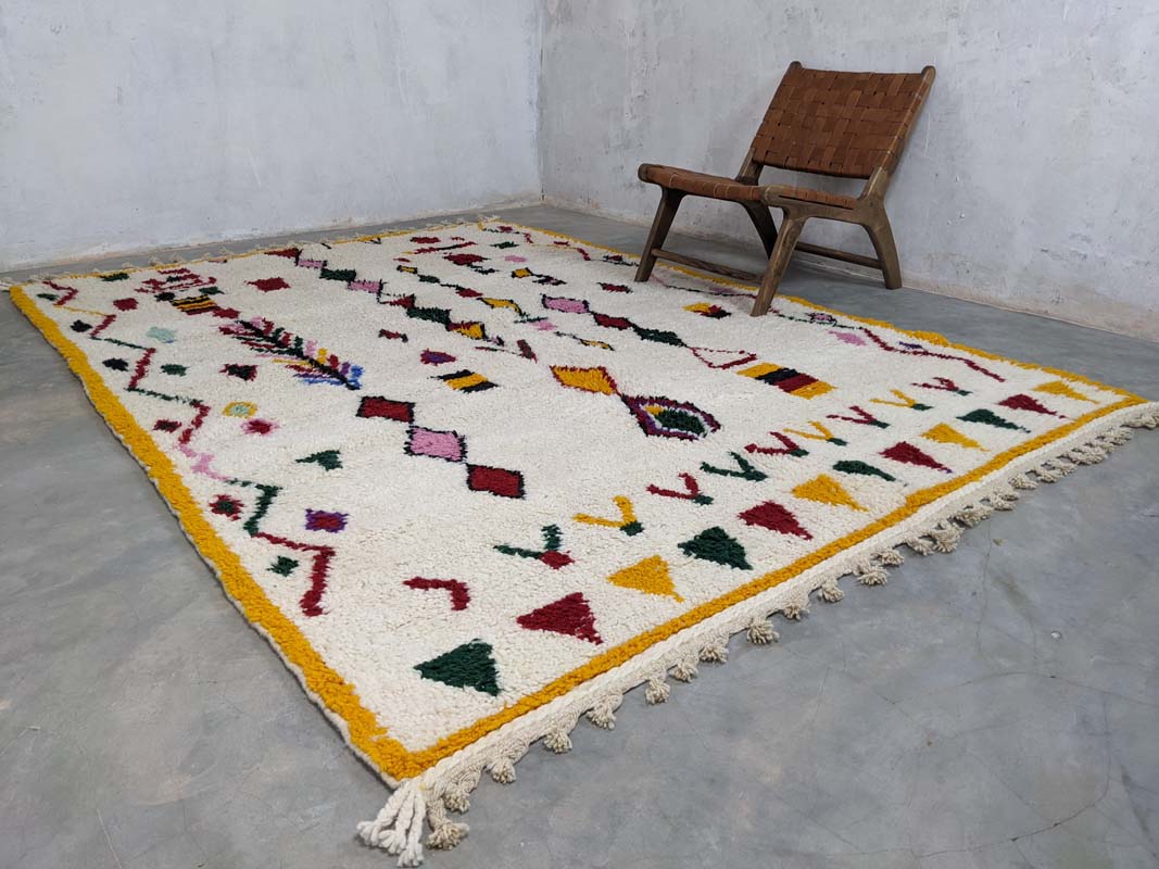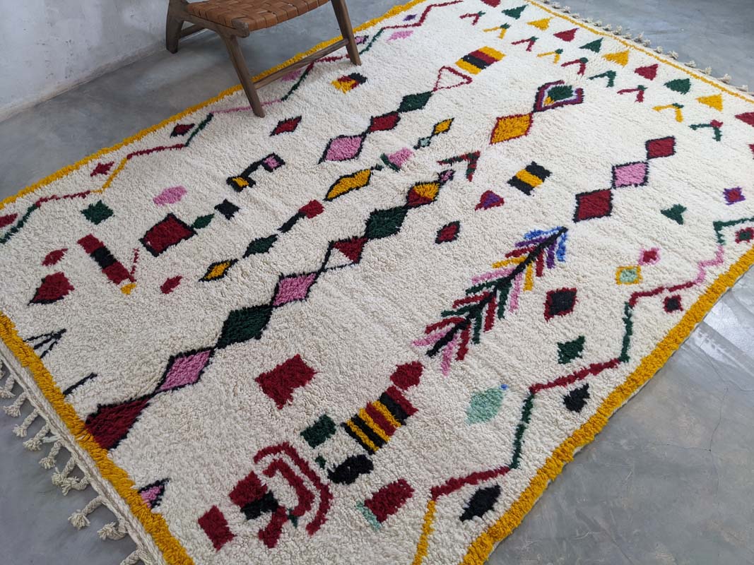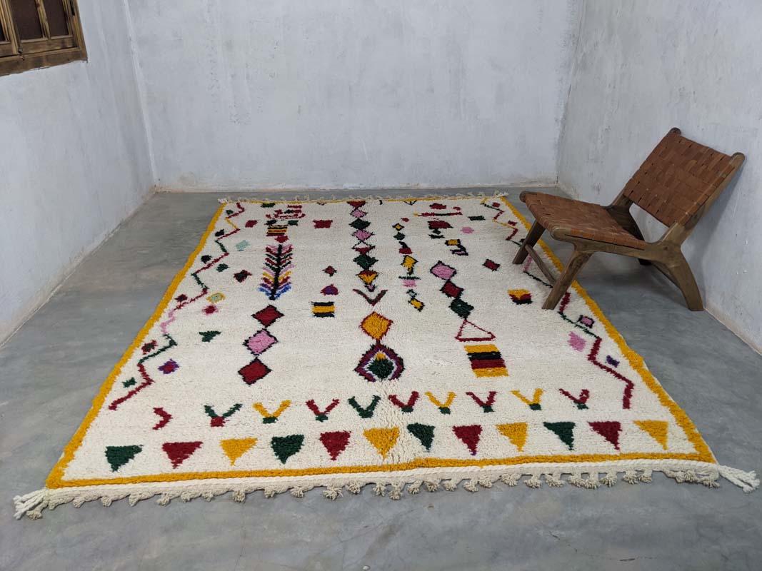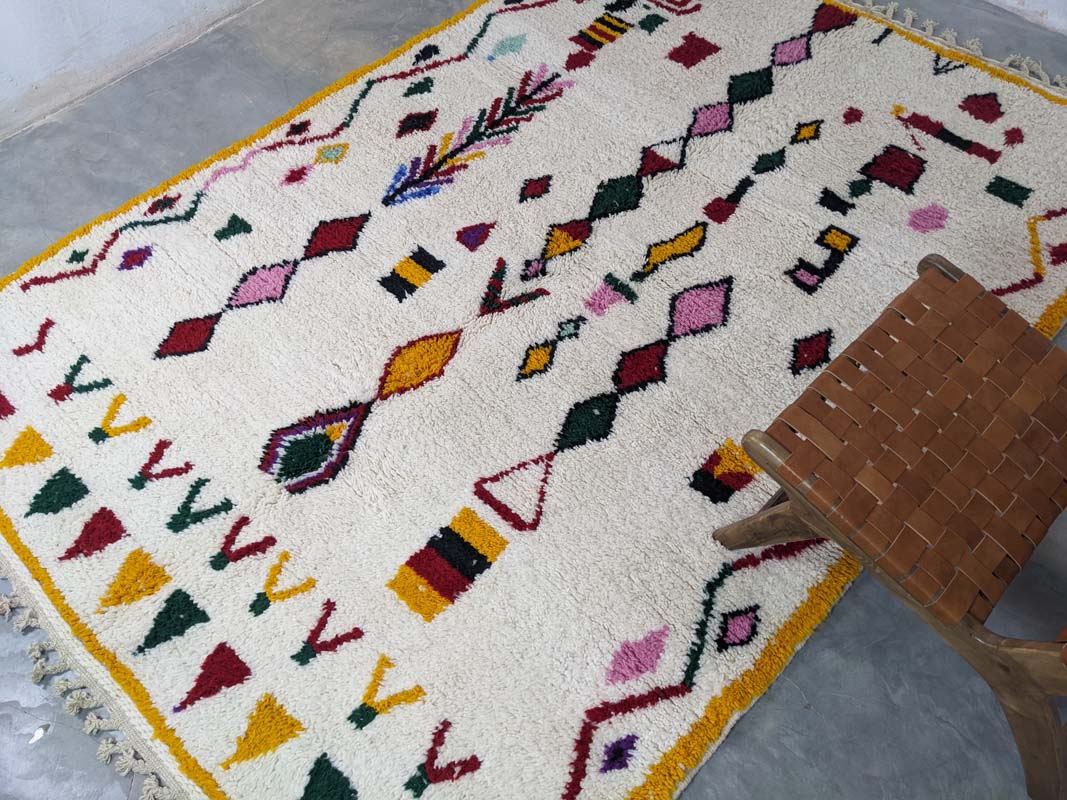 Ovaj jedinstveni Berber tepih unosi toplinu, stil i dašak marokanske tradicije u svaki prostor. Ručno izrađen u Maroku od visokokvalitetne, mekane nove vune, svaki primjerak je original – rezultat pažljivog ručnog čvorovanja koje majstori prenose generacijama. Suvremeni geometrijski uzorci s boho-etno štihom savršeno se uklapaju u razne interijere, od skandinavskog do mid-century i boho-chic stila. Zahvaljujući skladnim bojama i uzorcima, ovaj tepih postaje upečatljiv element u dnevnom boravku, spavaćoj sobi ili hodniku.