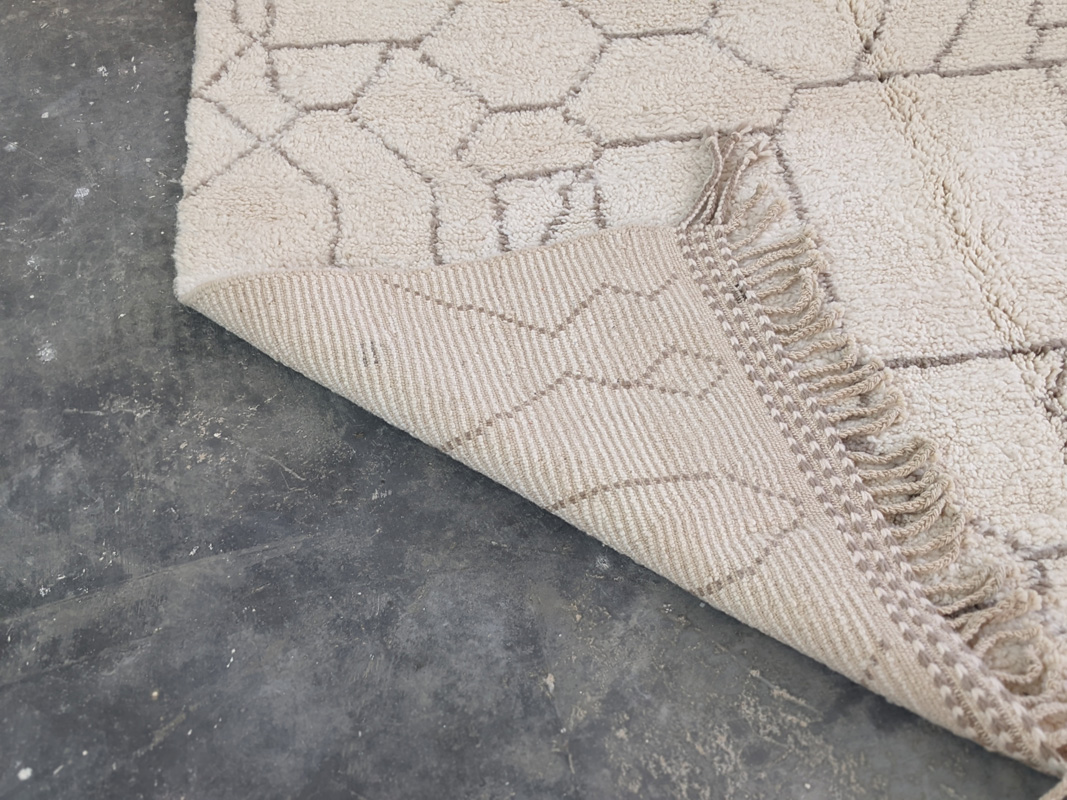 Tepih G370 iz kolekcije originalnih Berber tepiha donosi spoj autentičnog marokanskog zanatstva i suvremenog dizajna. Ručno čvoran od meke, visokokvalitetne nove vune, svaki primjerak je jedinstveno djelo s toplinom i karakterom. Geometrijski uzorci u boho-etno stilu skladno se uklapaju u razne interijere – od skandinavskog minimalizma do mid-century klasike i razigranog boho uređenja. Harmonija boja i tekstura čini ovaj tepih vizualno privlačnim akcentom u svakoj prostoriji, bilo da se radi o dnevnom boravku, spavaćoj sobi ili hodniku.