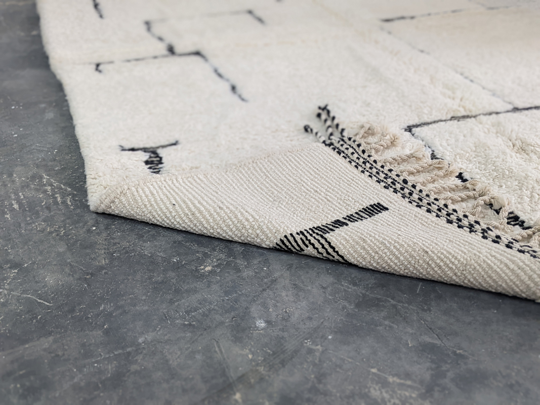 Unesite toplinu, stil i dašak autentičnog marokanskog zanatstva u svoj dom s ovim jedinstvenim Berber tepihom. Riječ je o ručno izrađenom primjerku iz Maroka, pažljivo čvoranom od visokokvalitetne, mekane nove vune. Suvremeni geometrijski uzorak s boho-etno notom savršeno se uklapa u različite interijere – od skandinavskih i mid-century prostora do boho chic ambijenta. Harmonija boja i uzoraka čini ga upečatljivim detaljem bilo da se nalazi u dnevnom boravku, spavaćoj sobi ili hodniku. Ovaj tepih nije samo dekoracija – to je funkcionalno umjetničko djelo koje donosi karakter i udobnost svakom prostoru.