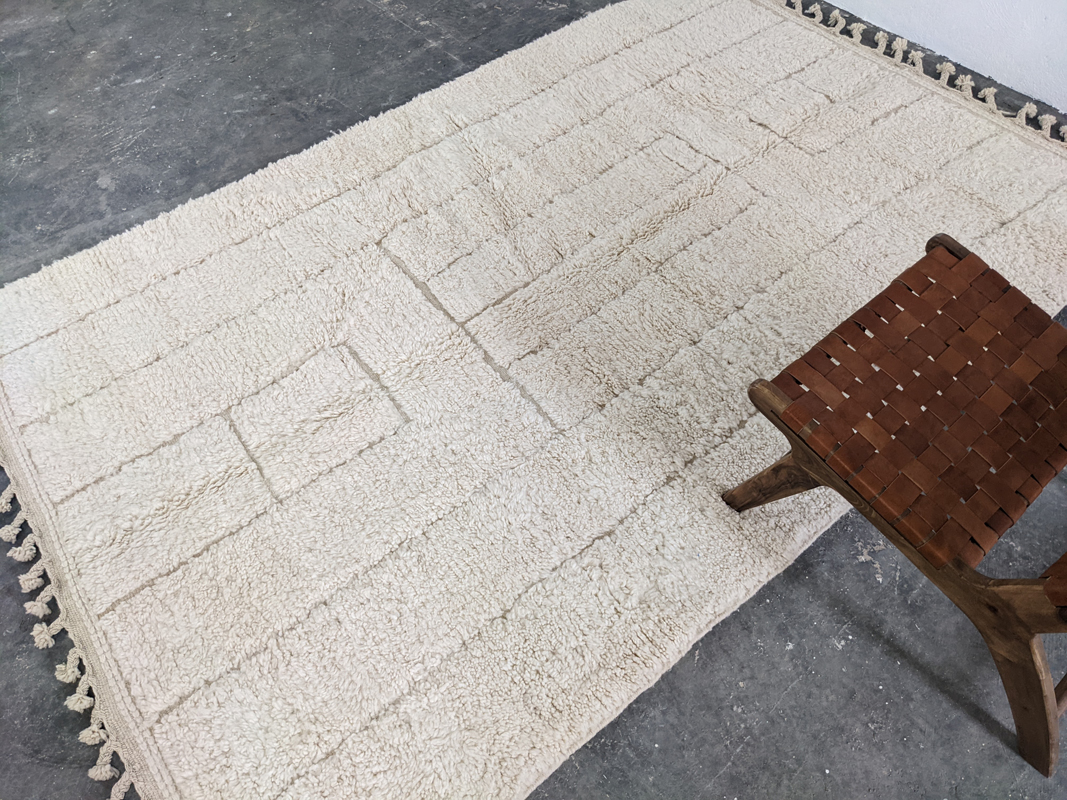 Unesite toplinu, stil i dašak marokanskog majstorstva u svoj dom s ovim jedinstvenim Berber tepihom G323. Svaki primjerak ručno je izrađen u Maroku od visokokvalitetne, mekane nove vune, s posebnom pažnjom i ljubavlju. Moderan geometrijski uzorak s boho-etno prizvukom savršeno se uklapa u različite stilove interijera – od skandinavskog i mid-century dizajna do boho-chic uređenja. Skladne boje i uzorci čine ga vizualnim naglaskom u svakoj prostoriji – bilo da je riječ o dnevnom boravku, spavaćoj sobi ili hodniku.