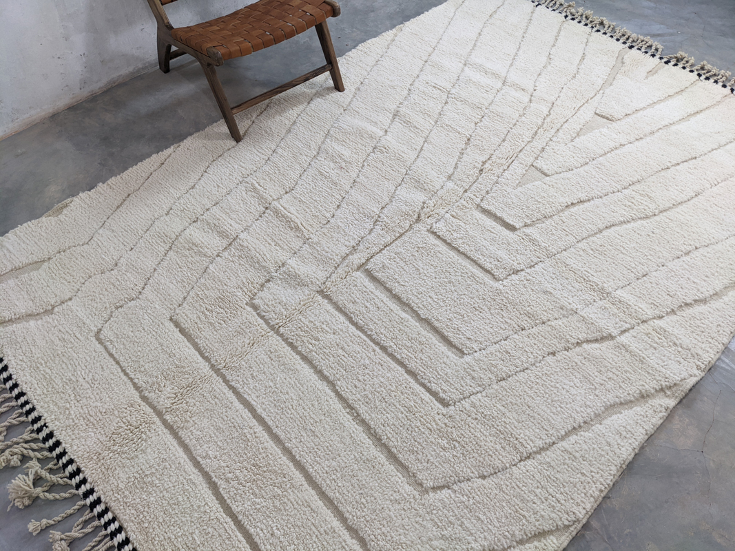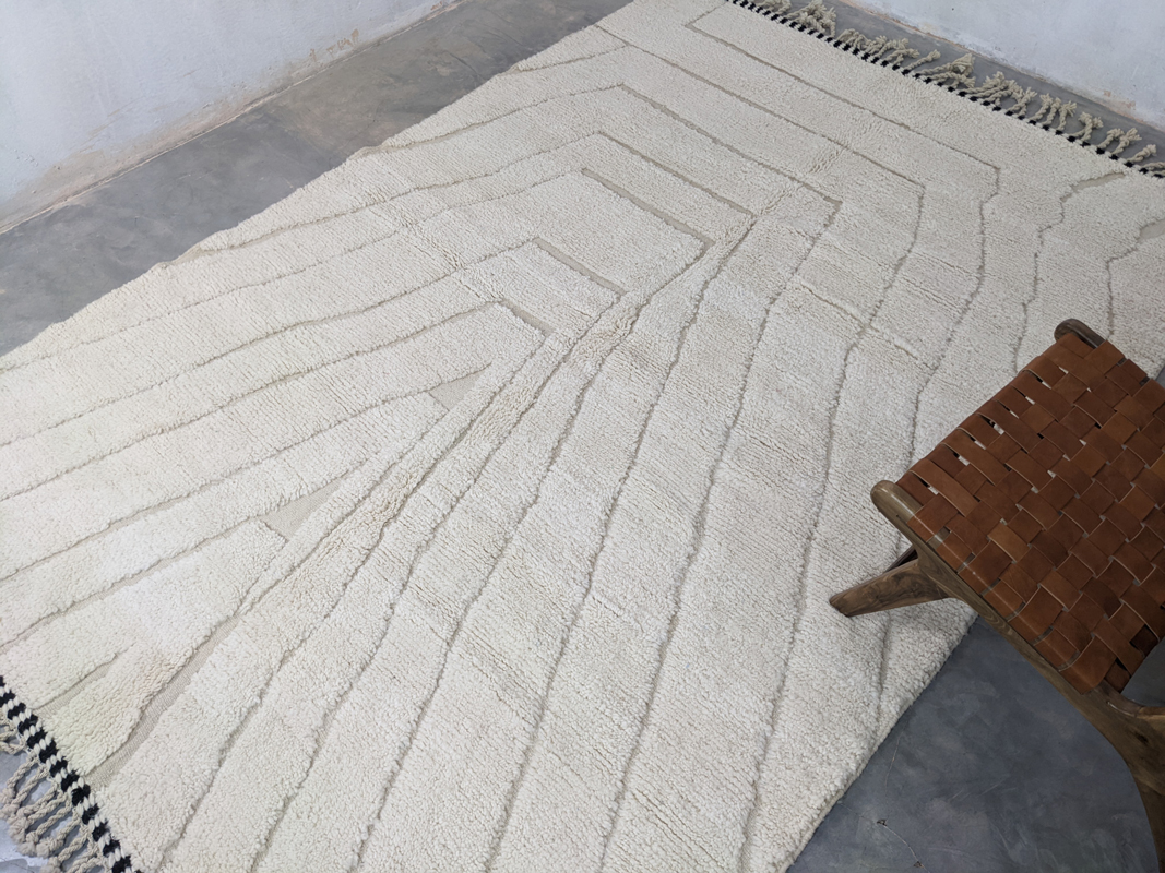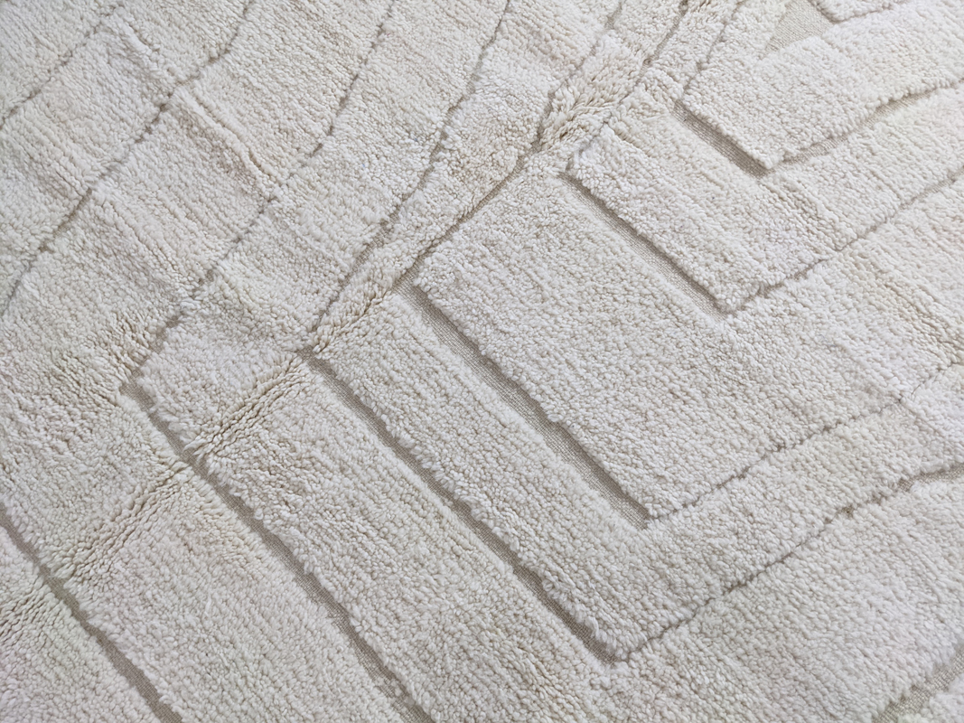 Unesite toplinu, stil i djelić marokanske tradicije u svoj dom s ovim originalnim Berber tepihom G304. Svaki tepih je ručno izrađen u Maroku od mekane, visokokvalitetne nove vune, pažljivo čvoran od strane iskusnih majstora. Suvremeni geometrijski uzorak s boho-etno notom savršeno se uklapa u različite stilove uređenja – od skandinavskog i mid-century dizajna do boho-chic interijera. Skladne boje i upečatljiva tekstura čine ovaj tepih pravim vizualnim središtem u dnevnoj sobi, spavaćoj sobi ili hodniku.