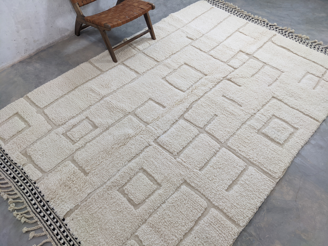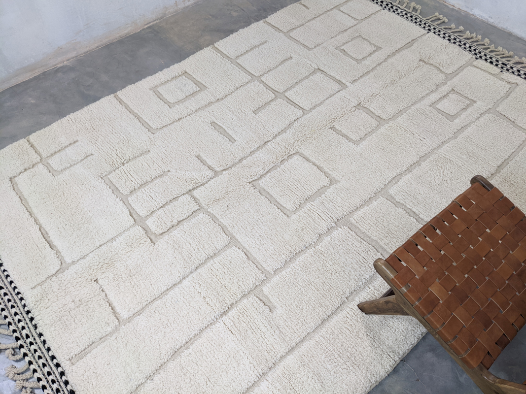 Dodajte toplinu, karakter i dašak autentičnog marokanskog umijeća svom interijeru s ovim jedinstvenim Berber tepihom G314. Svaki primjerak je ručno izrađen u Maroku – pažljivo čvoran od visokokvalitetne, mekane nove vune. Suvremeni geometrijski uzorci s boho-etno prizvukom skladno se stapaju s različitim stilovima uređenja – od skandinavskog i mid-century dizajna do boho-chic prostora. Harmonija boja i upečatljiv dizajn čine ovaj tepih centralnim dekorativnim elementom u dnevnoj sobi, spavaćoj sobi ili hodniku.