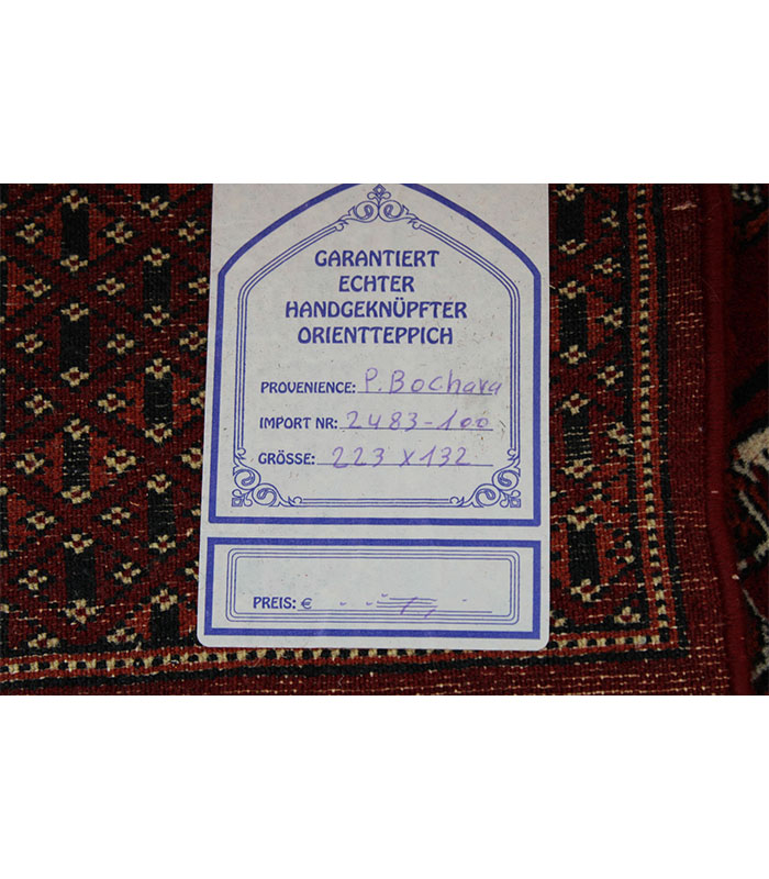 Buchara tepih br. 2483 ručno je izrađen tepih klasičnog i autentičnog dizajna, nadahnut bogatom tradicijom grada Buchare. Ovaj tepih ističe se iznimnom kvalitetom izrade, vrhunskim materijalima i prepoznatljivim geometrijskim i umjetničkim motivima.