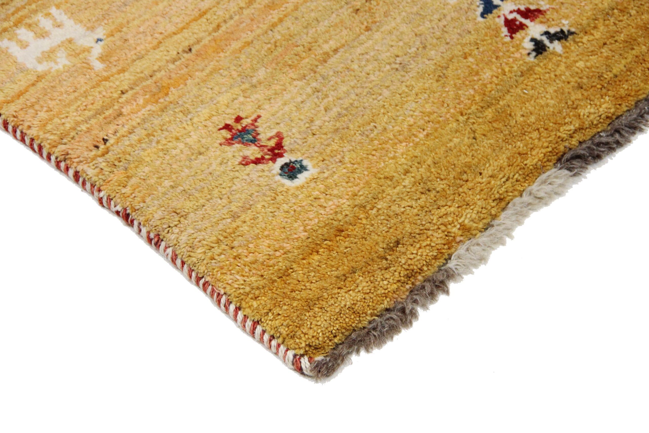 Ovaj primjerak izrađen je od vune starog uzgoja, poznate po iznimnoj mekoći i dugotrajnosti. Bojan isključivo biljnim pigmentima – iz plodova, lišća i korijenja – Gabbeh s godinama dobiva još dublju i topliju nijansu.