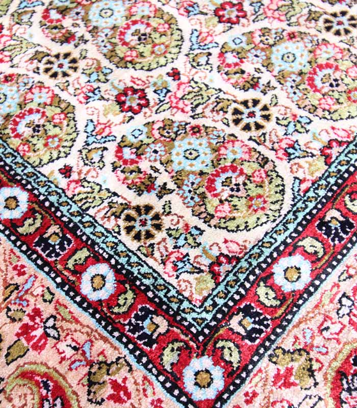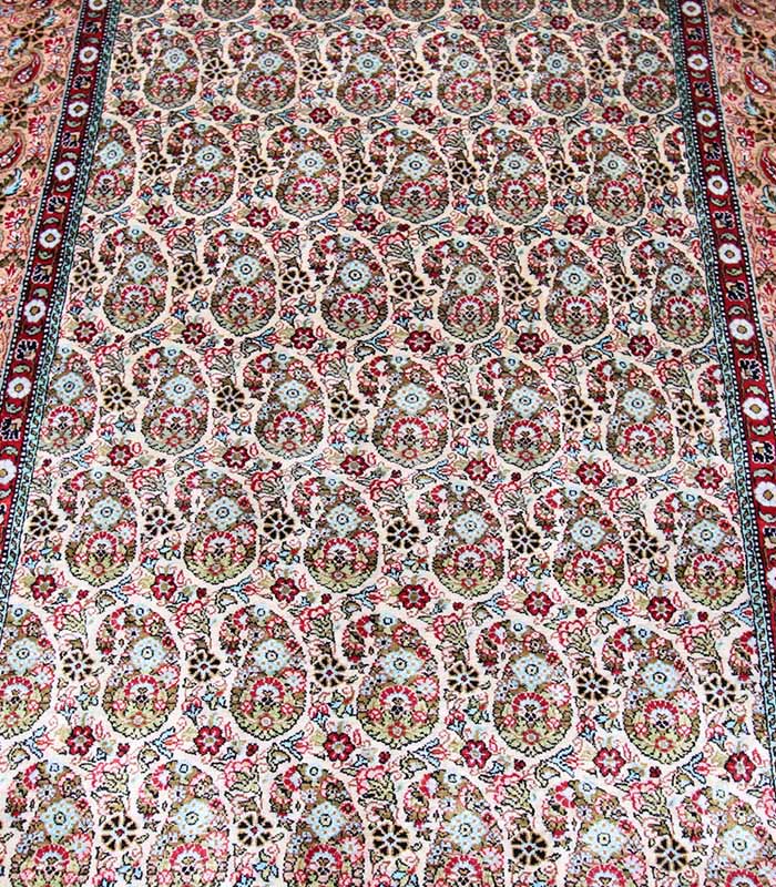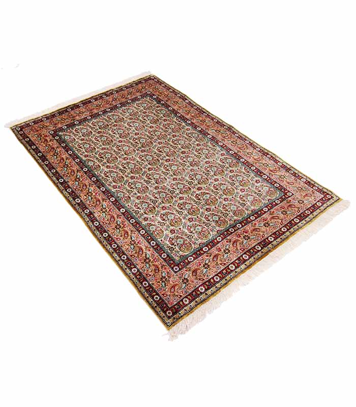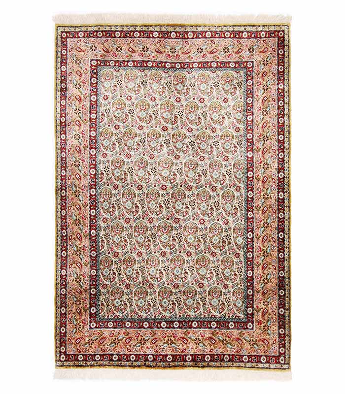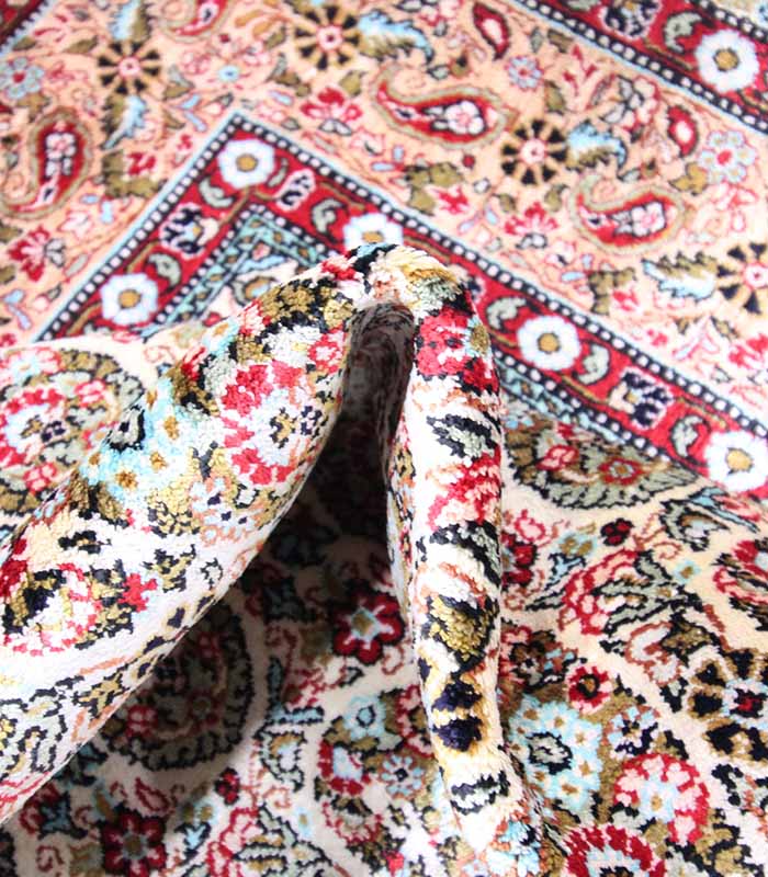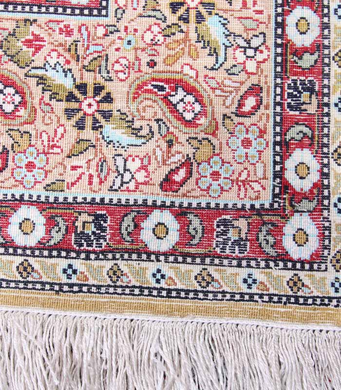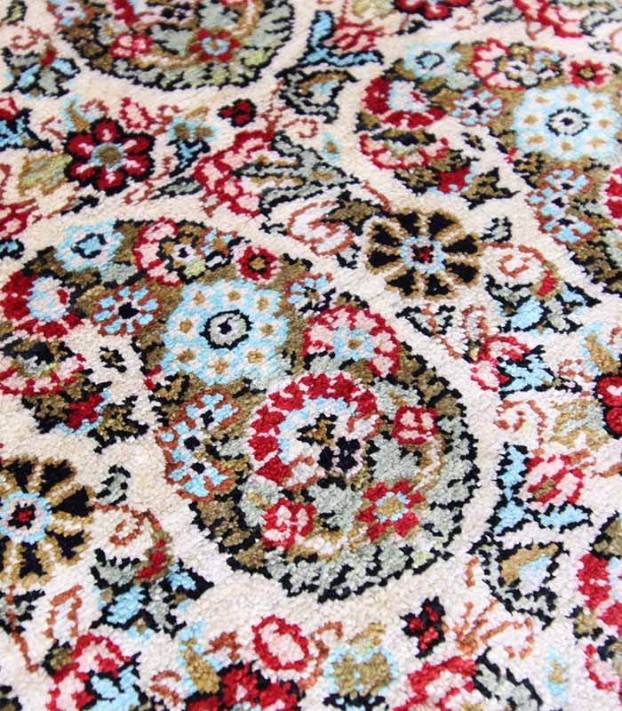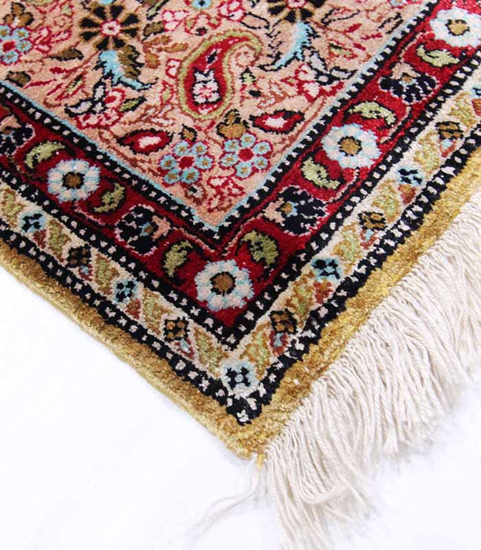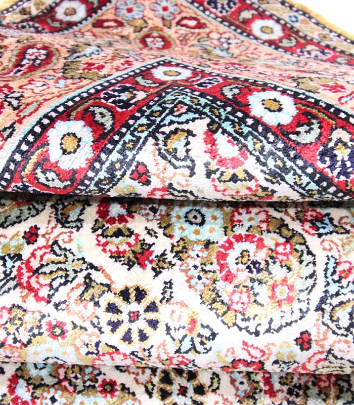 Perzijski tepih Ghom svila na svili br. 950 ističe se finim, detaljno izrađenim uzorkom nastalim pažljivim i preciznim bojanjem tri vrste čiste svilene niti. Ovaj ručno tkani tepih simbol je iranskog umjetničkog nasljeđa, a njegova iznimna kvaliteta i gustoća tkanja daju mu svilenkastu teksturu i dugotrajnu izdržljivost. Dekorativni motivi inspirirani su klasičnim orijentalnim uzorcima i savršeno se uklapaju u interijere koji naginju luksuznoj i tradicionalnoj estetici.