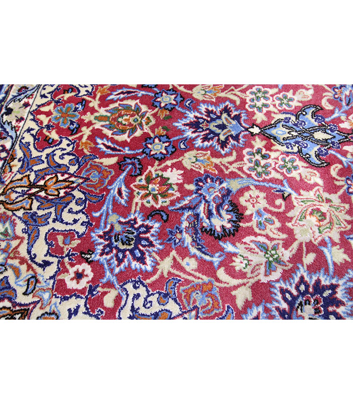 Perzijski tepih Isfahan Cork sa svilom br. 46 jedno je od rijetkih i starijih remek-djela iz Isfahana, izrađeno od pažljivo kombiniranih svilenih niti koje stvaraju jedinstven dizajn. Ovaj luksuzni tepih savršeno se uklapa u raskošne interijere zahvaljujući svojoj bogatoj teksturi, iznimnoj preciznosti izrade i dugotrajnoj kvaliteti. Isfahanski tepisi poznati su po motivima inspiriranim prirodnim pejzažima, životinjama i geometrijskim uzorcima, čime odražavaju bogatu povijest i kulturu grada Isfahana. Ručno tkan, ovaj tepih predstavlja spoj umjetnosti i tradicije, čineći svaki prostor elegantnim i sofisticiranim.
