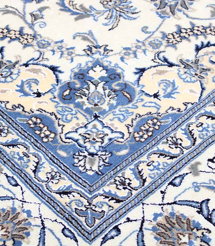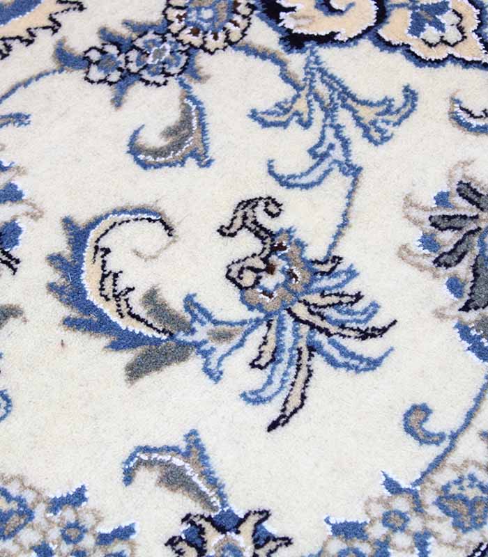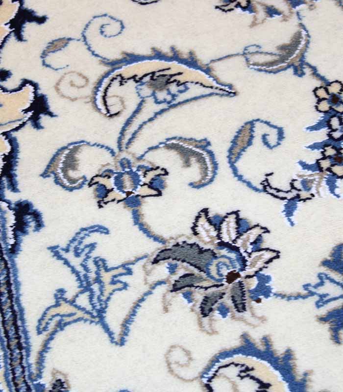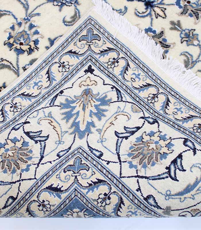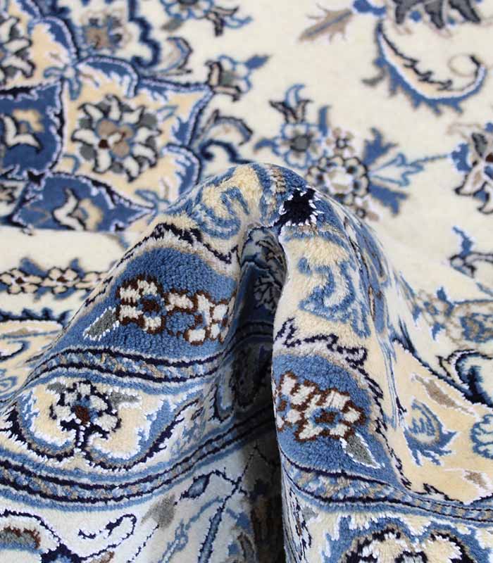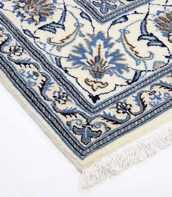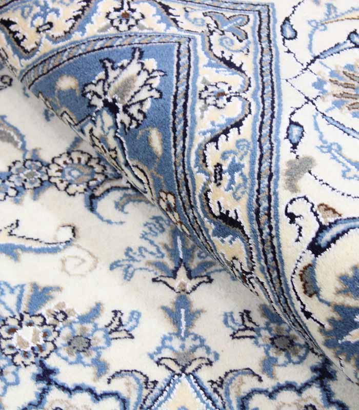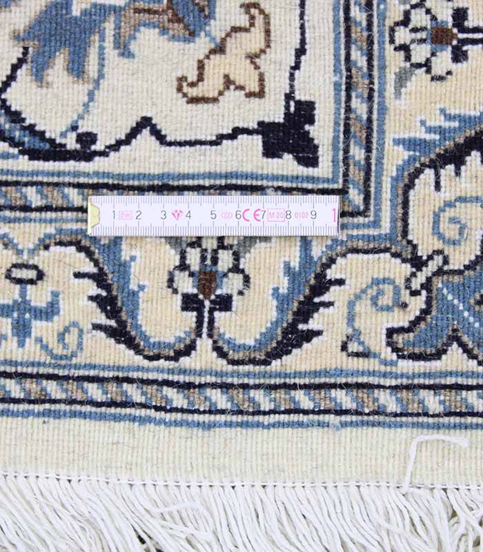 Tepih Nain 12 La broj 88 odlikuje se izuzetnom izradom od vune i pamuka, spajajući kremastu osnovu s elegantnim plavim detaljima. Ovaj ručno tkani iranski tepih donosi sofisticiranost i šarm tradicionalne umjetnosti u svaki prostor. Njegov suptilan uzorak cvjetnih i geometrijskih motiva upotpunjuje bezvremenski dizajn, čineći ga savršenim izborom za domove koji žele luksuz i udobnost. Tanka i meka tekstura ovog tepiha dodatno naglašava njegovu jedinstvenost i visoku kvalitetu.