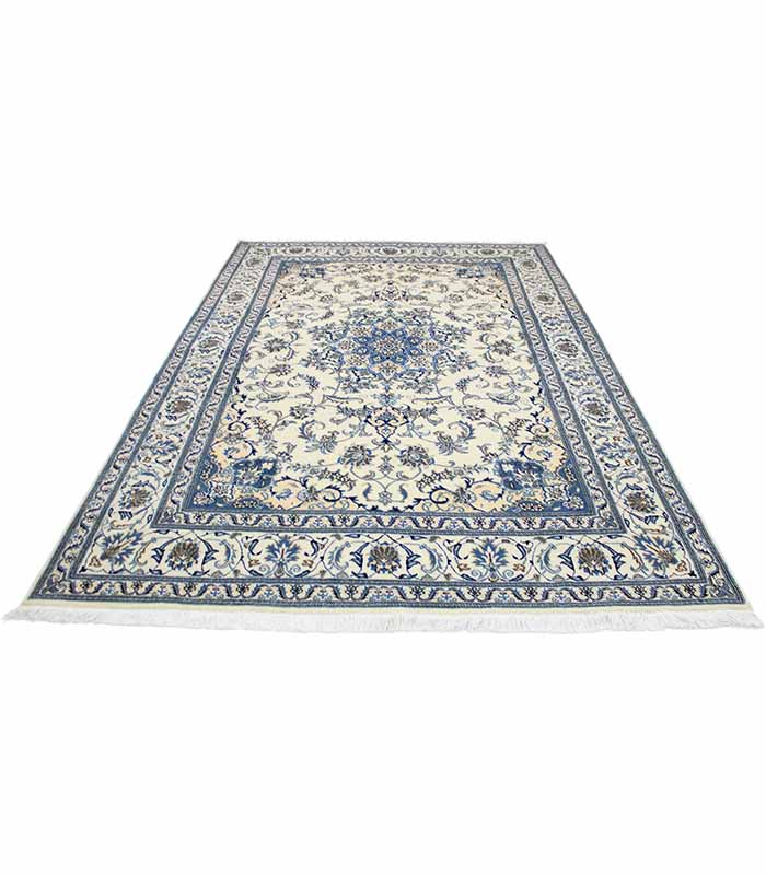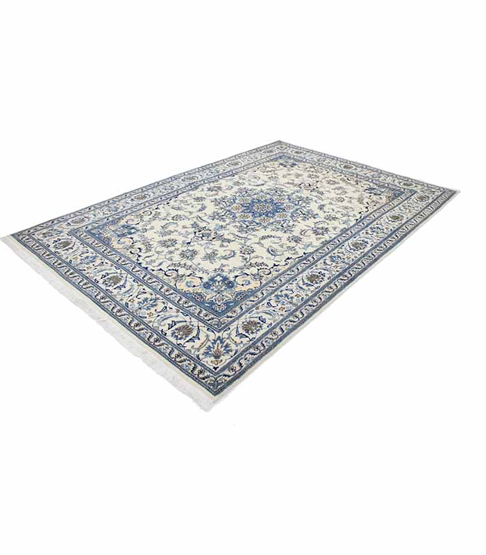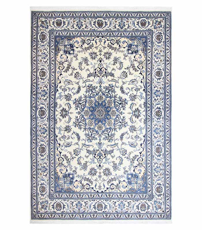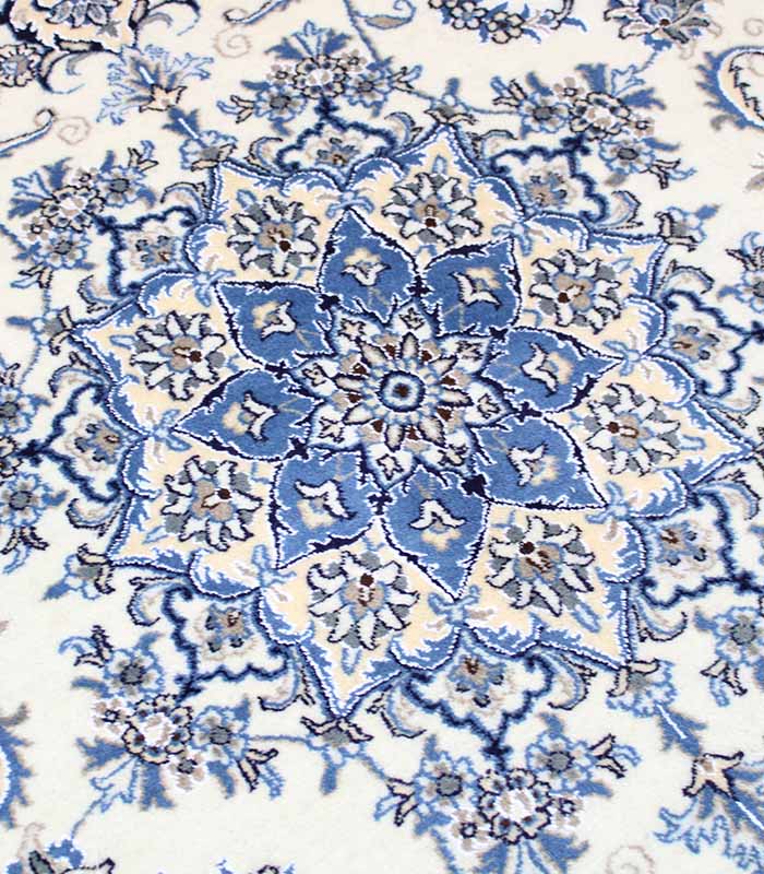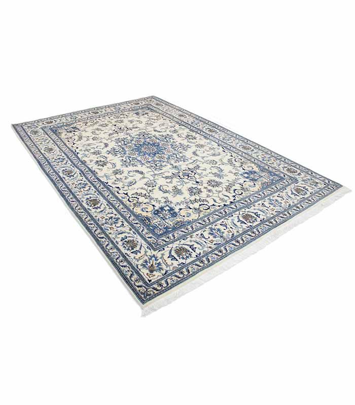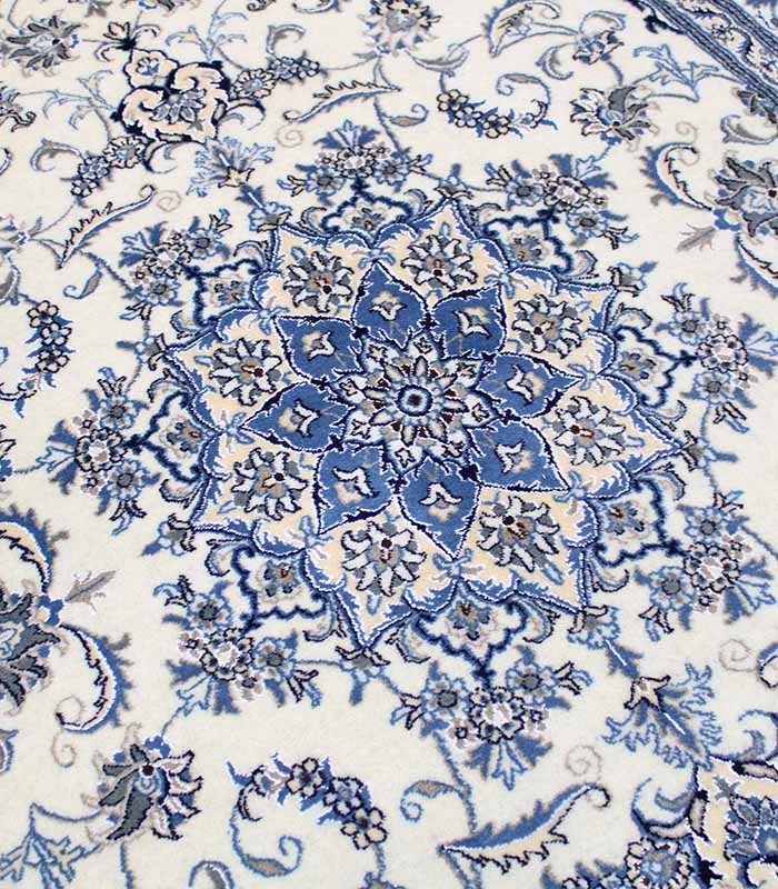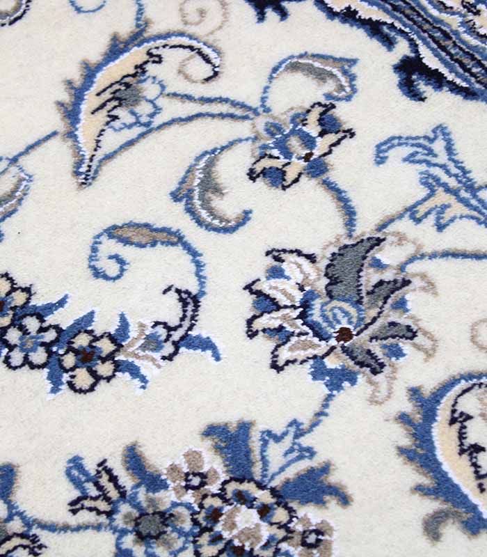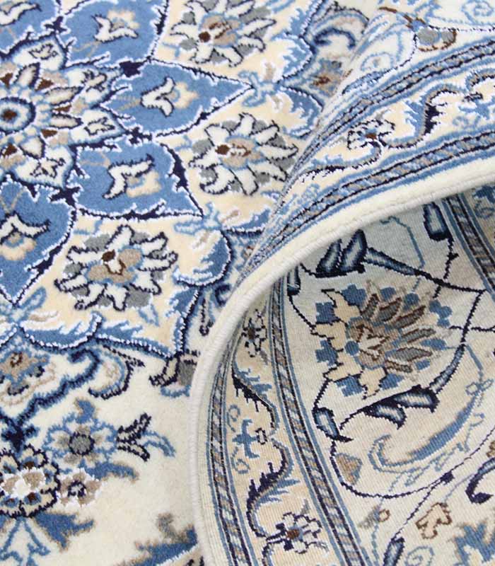 Tepih Nain 12 La broj 88 odlikuje se izuzetnom izradom od vune i pamuka, spajajući kremastu osnovu s elegantnim plavim detaljima. Ovaj ručno tkani iranski tepih donosi sofisticiranost i šarm tradicionalne umjetnosti u svaki prostor. Njegov suptilan uzorak cvjetnih i geometrijskih motiva upotpunjuje bezvremenski dizajn, čineći ga savršenim izborom za domove koji žele luksuz i udobnost. Tanka i meka tekstura ovog tepiha dodatno naglašava njegovu jedinstvenost i visoku kvalitetu.