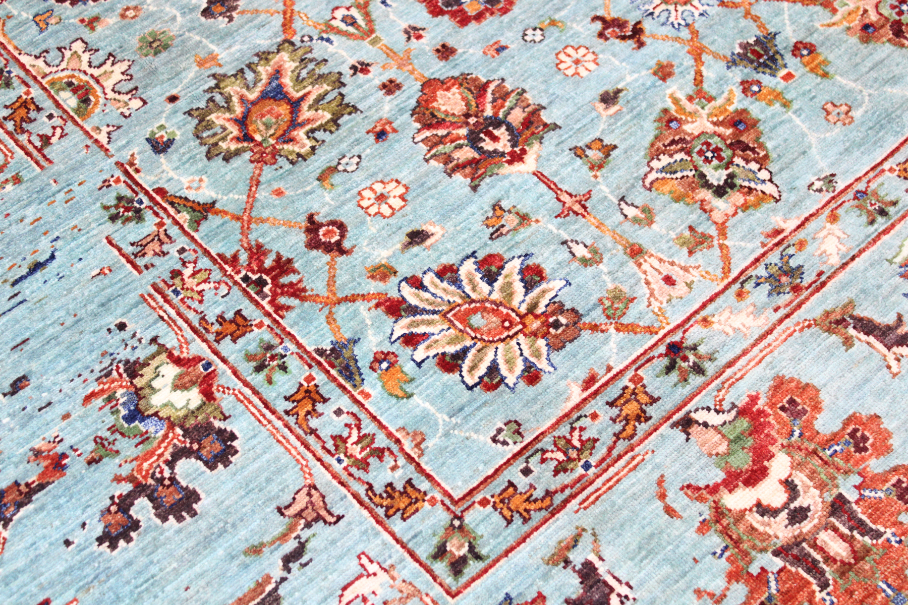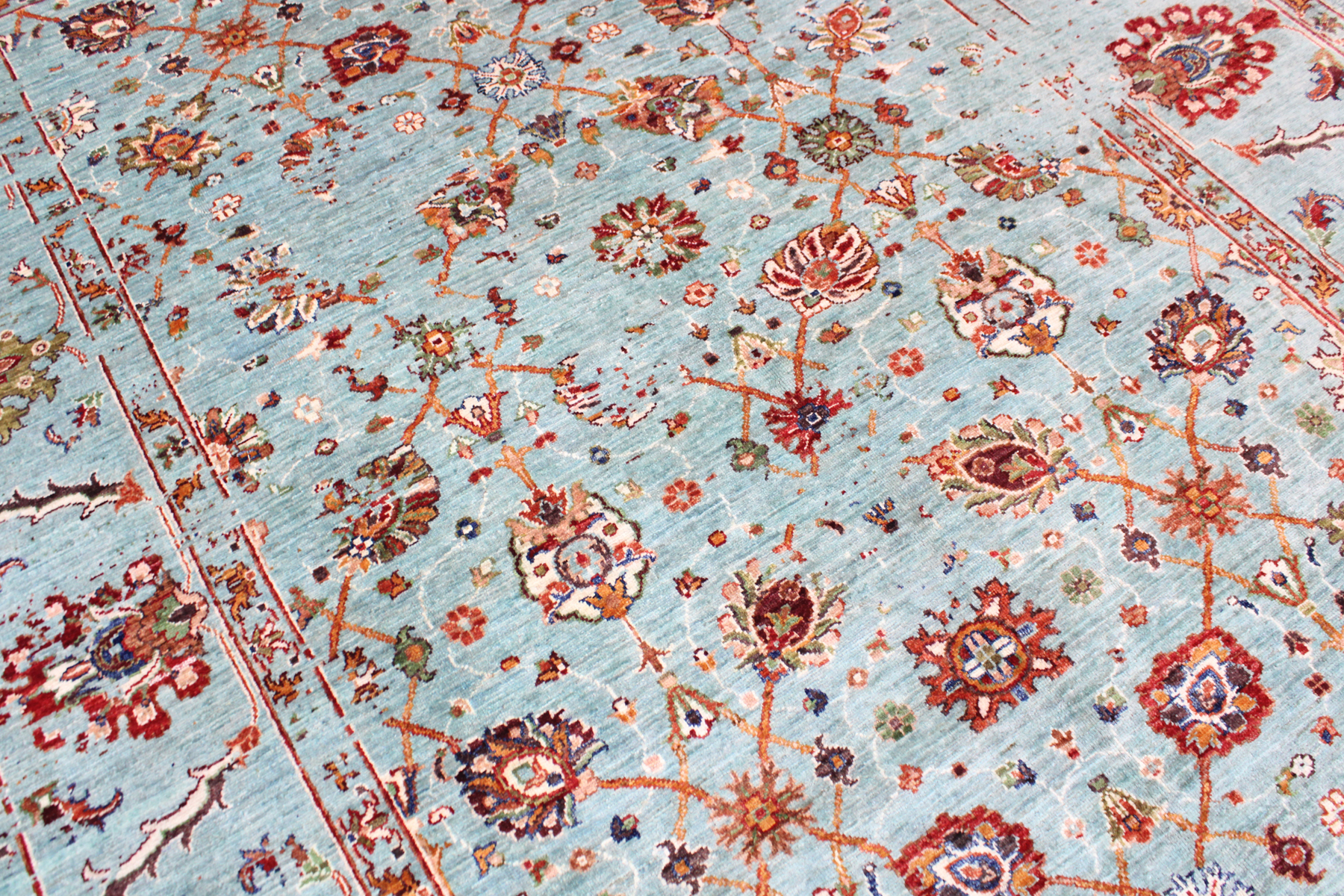 Karakterizira ga smirena i elegantna paleta tonova dobivena posebnim postupkom bojanja koji tepihu daje blago patinirani, gotovo antikni izgled. Ornamentika je pretežno floralna, skladno raspoređena i uravnotežena, čime se postiže osjećaj harmonije i suptilne elegancije.