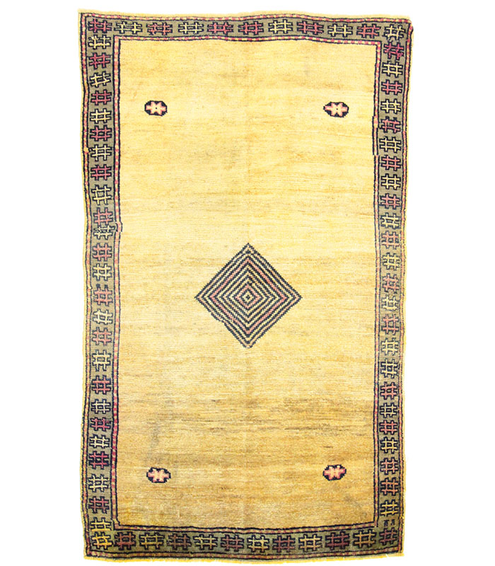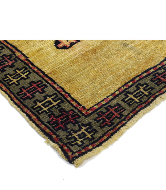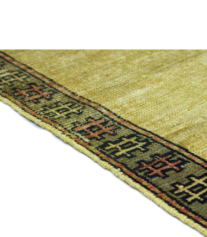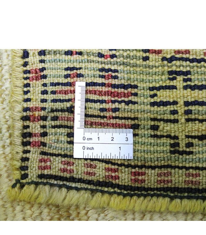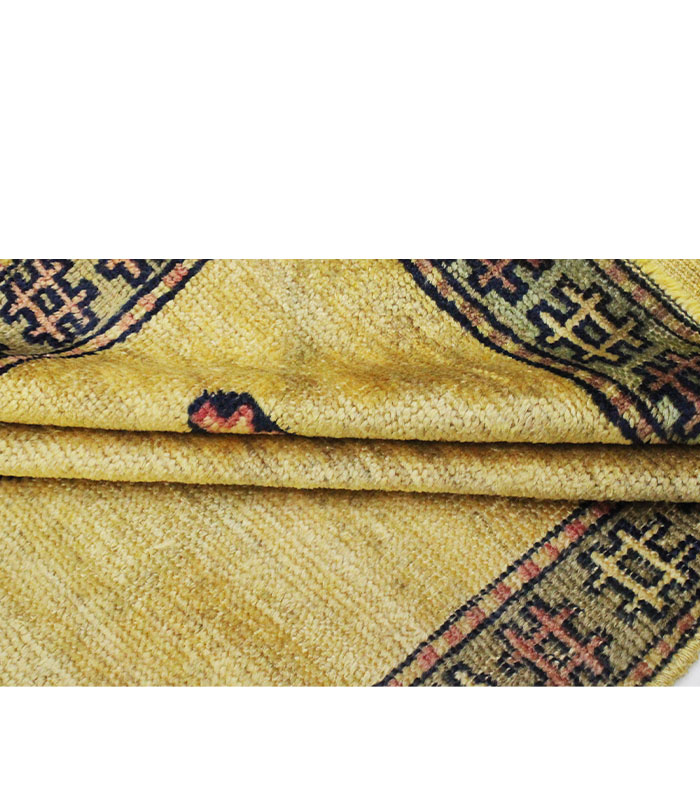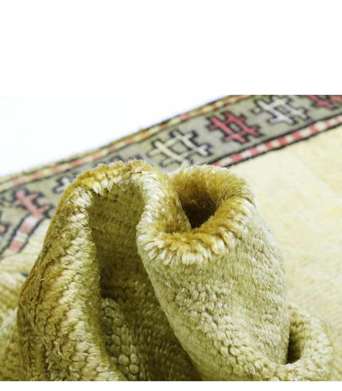 Zlatna boja ovog tepiha dodatno ističe detalje ručne izrade, naglašavajući preciznost i simetriju uzoraka. Ova ekskluzivna nijansa postiže se korištenjem prirodnih biljnih i mineralnih pigmenata ili suvremenim tehnikama bojanja koje osiguravaju dugotrajnost sjaja i postojanost boja.